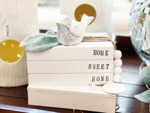 In the spirit of Halloween and in celebration of Wicked’s Elphaba (and her verdigris), I created a BOO glitter pumpkin stack that not only livens up your doorstep but also distributes your candy while you are out Trick-or-Treating.
