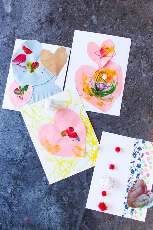 For these Valentines, I placed a variety of supplies on the table and let my kids create whatever they desired.