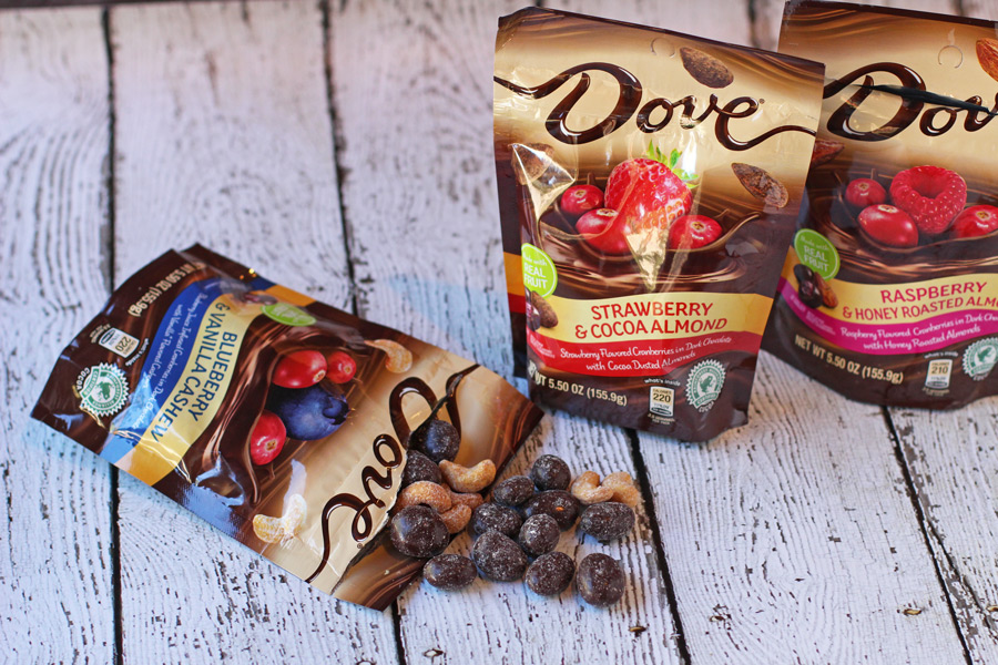 Anything with dark chocolate has my vote for yummy. I’m a huge fan of the DOVE® Chocolate Fruit & Nut products that can be found at Walmart. Look for them in a special in-store display this month. I tried DOVE® Dark Chocolate Blueberry and Vanilla Cashew, DOVE® Dark Chocolate Strawberry and Cocoa Almond and DOVE® Dark Chocolate Raspberry and Honey Roasted Almond.